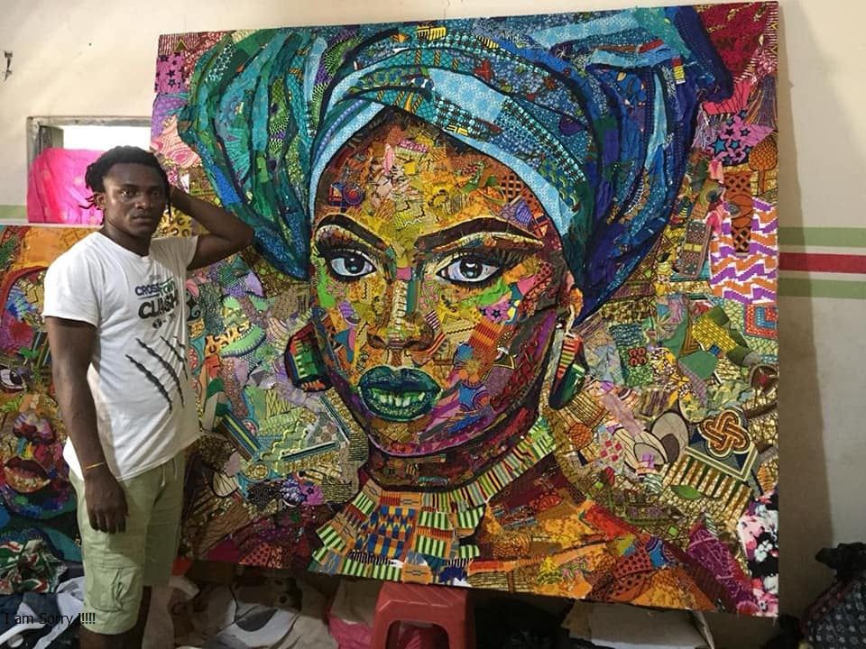 John Odimegwu, also known as Odis Arts, is a talented Nigerian-born mixed-media artist based in Ghana. From an early age, John showed a deep passion for art, starting to draw at the age of five. A self-taught artist, he specializes in pencil drawing, painting, abstract art, and fabric art collage, with a unique focus on African fabrics. His work celebrates cultural identity, individuality, and the beauty of African heritage.